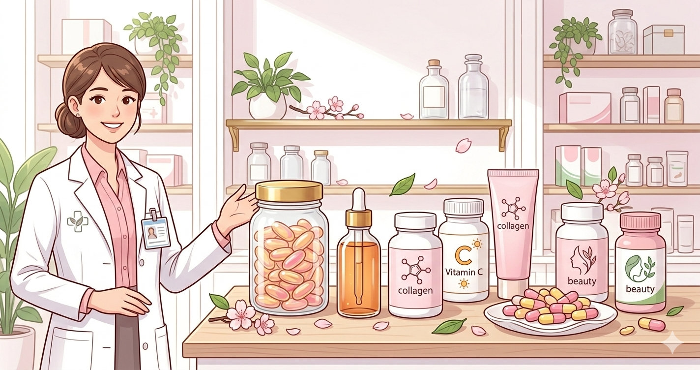 私は病院薬剤師として10年間勤務し、患者さんから「どのサプリがいいですか?」という相談を受けることも少なくありませんでした。この記事では、代表的な美容サプリの成分について、一般的に知られている特徴や選び方の目安を薬剤師の視点からお伝えします。